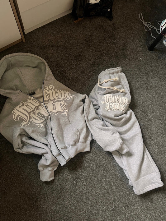 Sold outGrey Zip Up Puff Print Tracksuit